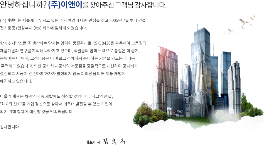 상호명 (주)이앤이 대표자 김후규 사업자등록번호 127-81-90543 TEL 031-858-6128 FAX 031-858-5128